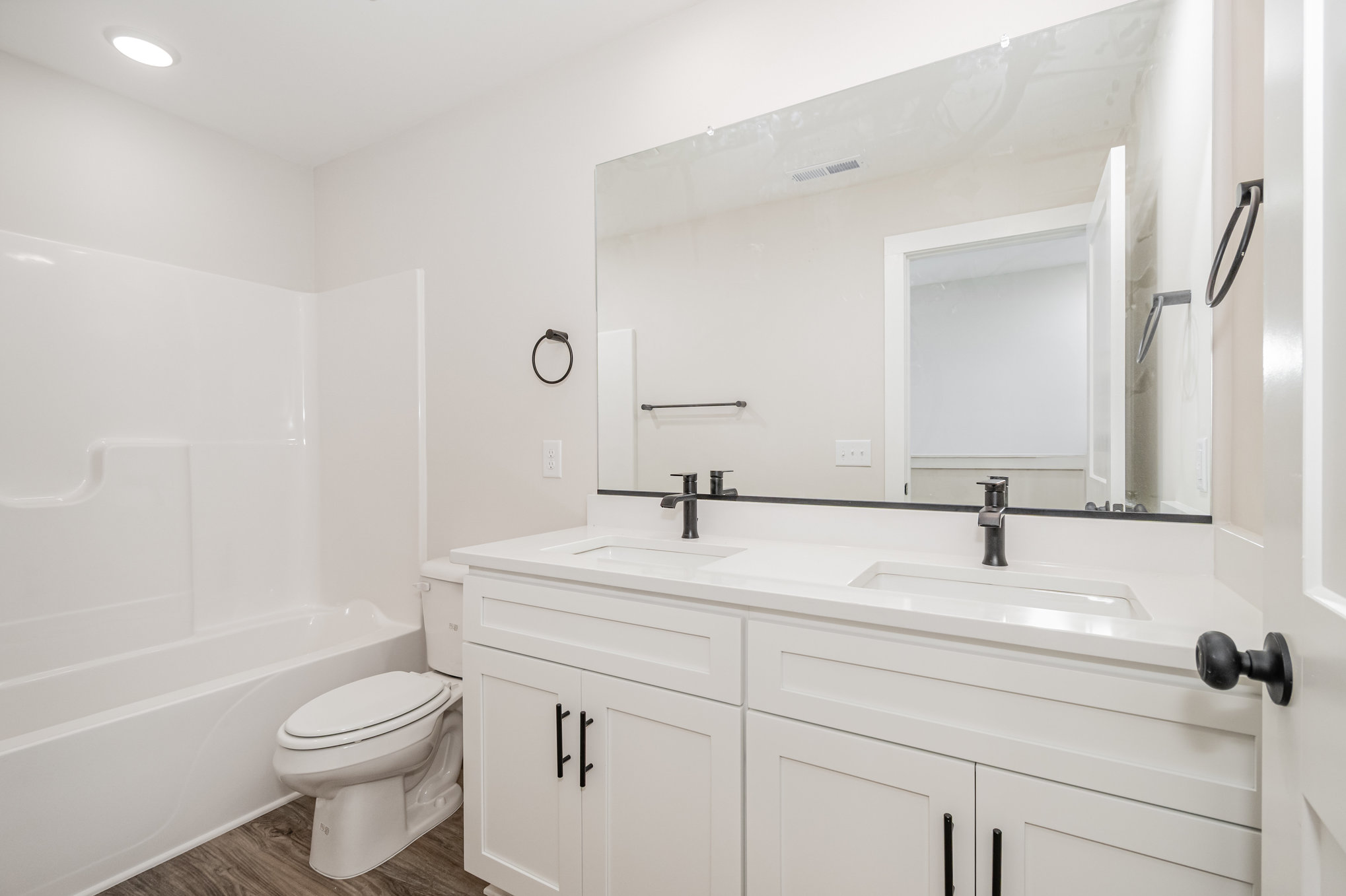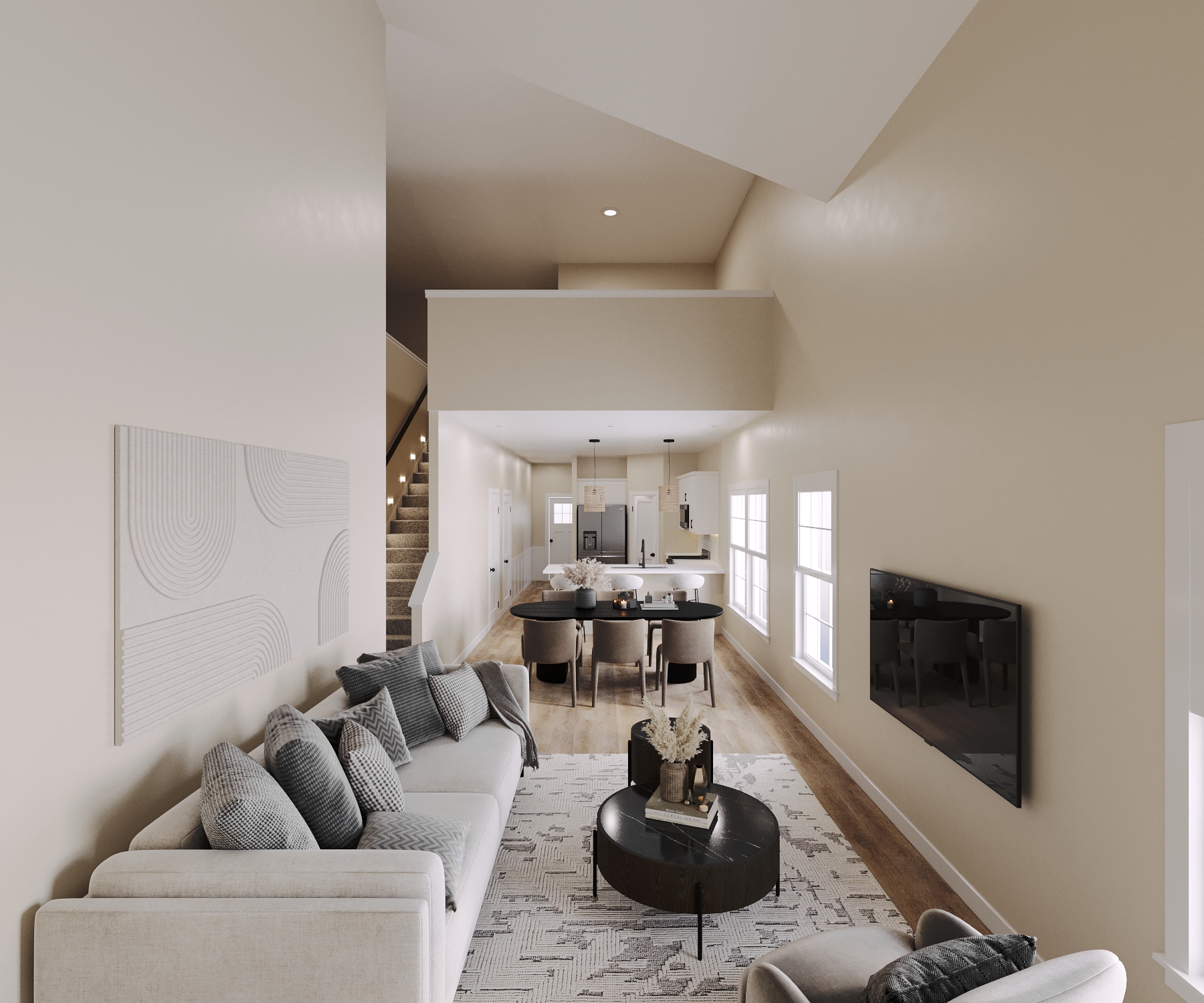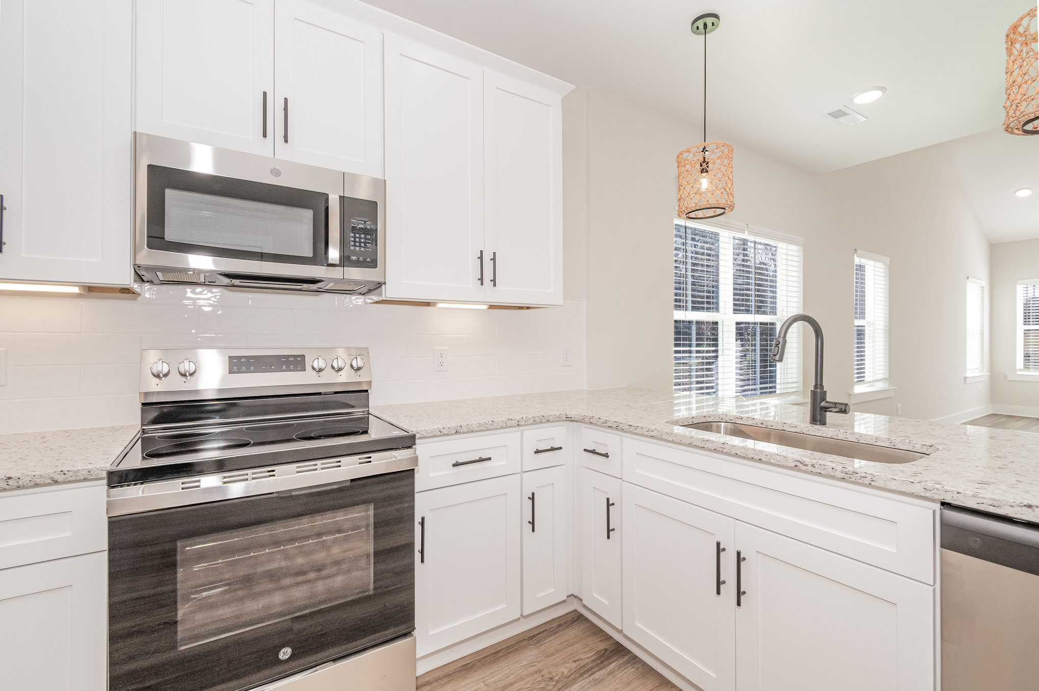 This modern, thoughtfully designed townhome features 4 spacious bedrooms, 2.5 baths, and a 1-car garage. The open-concept main level has a vaulted ceiling and showcases a contemporary kitchen with quartz countertops, a single basin stainless steel sink, a peninsula with bar seating, and sleek stainless steel appliances. The main-level primary suite offers a peaceful retreat with double vanities, quartz counters, and a private water closet. Upstairs, find three additional bedrooms, a full bath, and versatile storage space. Luxury vinyl plank flooring runs throughout most of the main floor, all bathrooms, and the laundry room. Step outside to enjoy a private rear patio, perfect for relaxing or entertaining. A 10-year limited home warranty is provided. Ask how you can receive up to $3,000 in closing costs when using our preferred lender and closing attorney. Buyer agents welcome. Schedule your tour today!